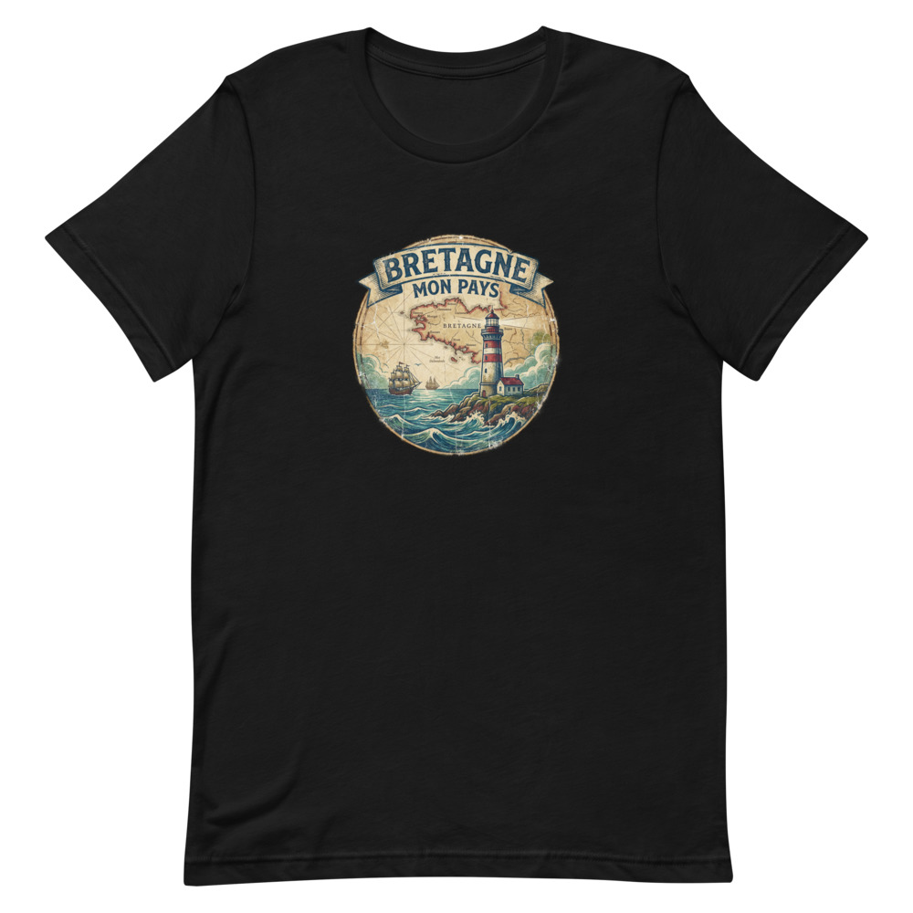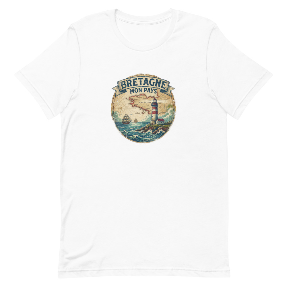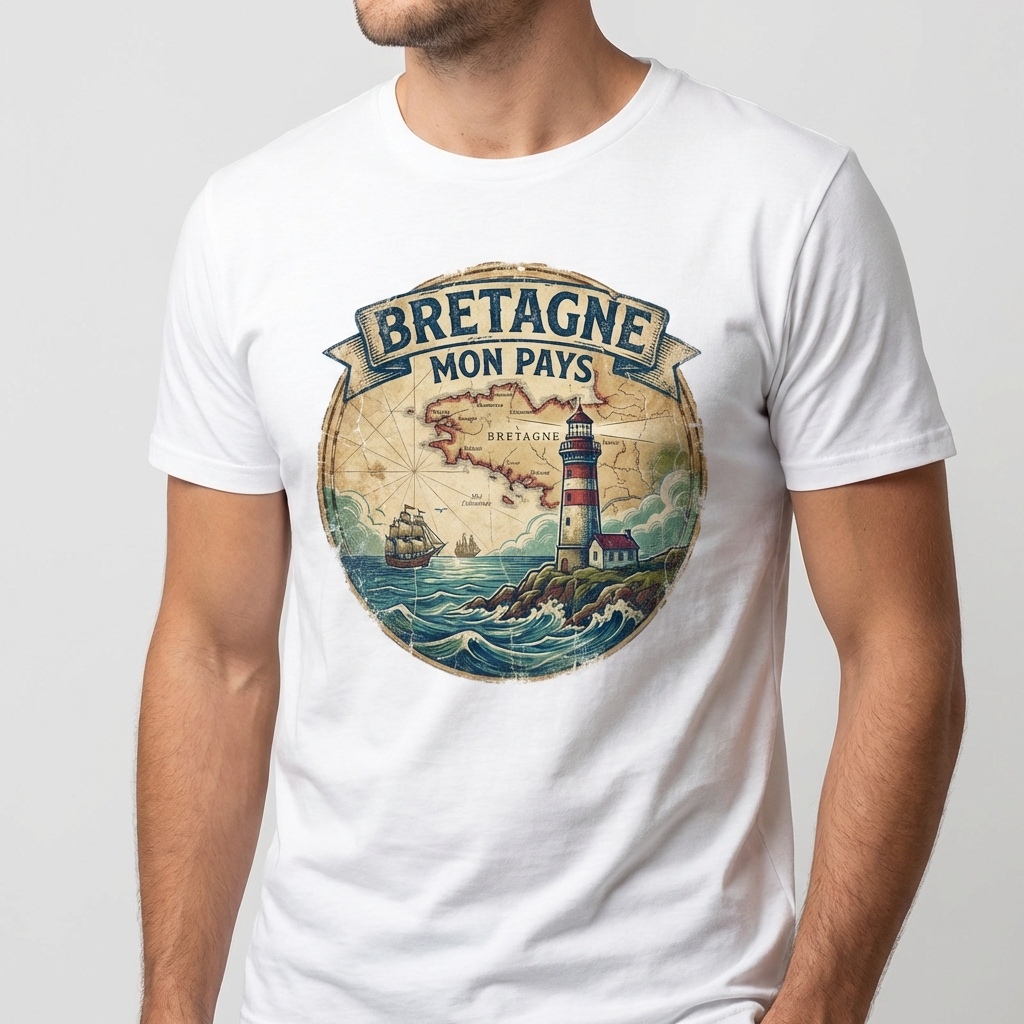 T-shirt Bretagne mon pays – Carte vintage et phare breton