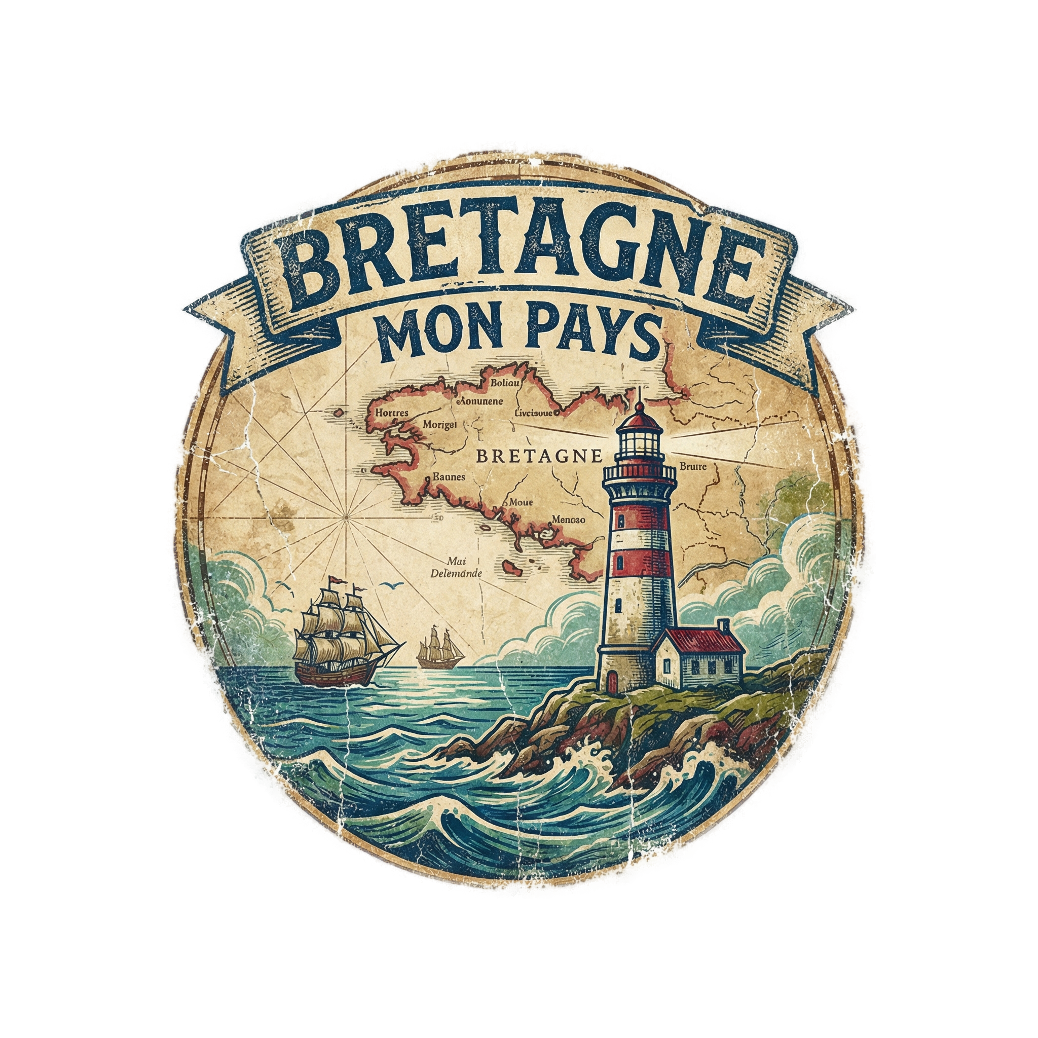 Vous sentez l’appel du large ? Le design « Bretagne Mon Pays » a été pensé pour les amoureux inconditionnels du Finistère, du Morbihan, des Côtes-d’Armor et de l’Ille-et-Vilaine. L’illustration principale propose une carte vintage de la Bretagne, rappelant les anciennes gravures maritimes, sublimée par la silhouette rassurante d’un phare guidant les marins.