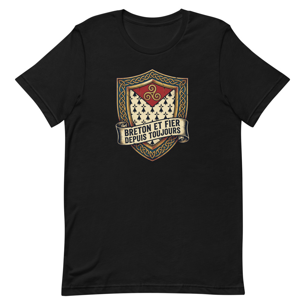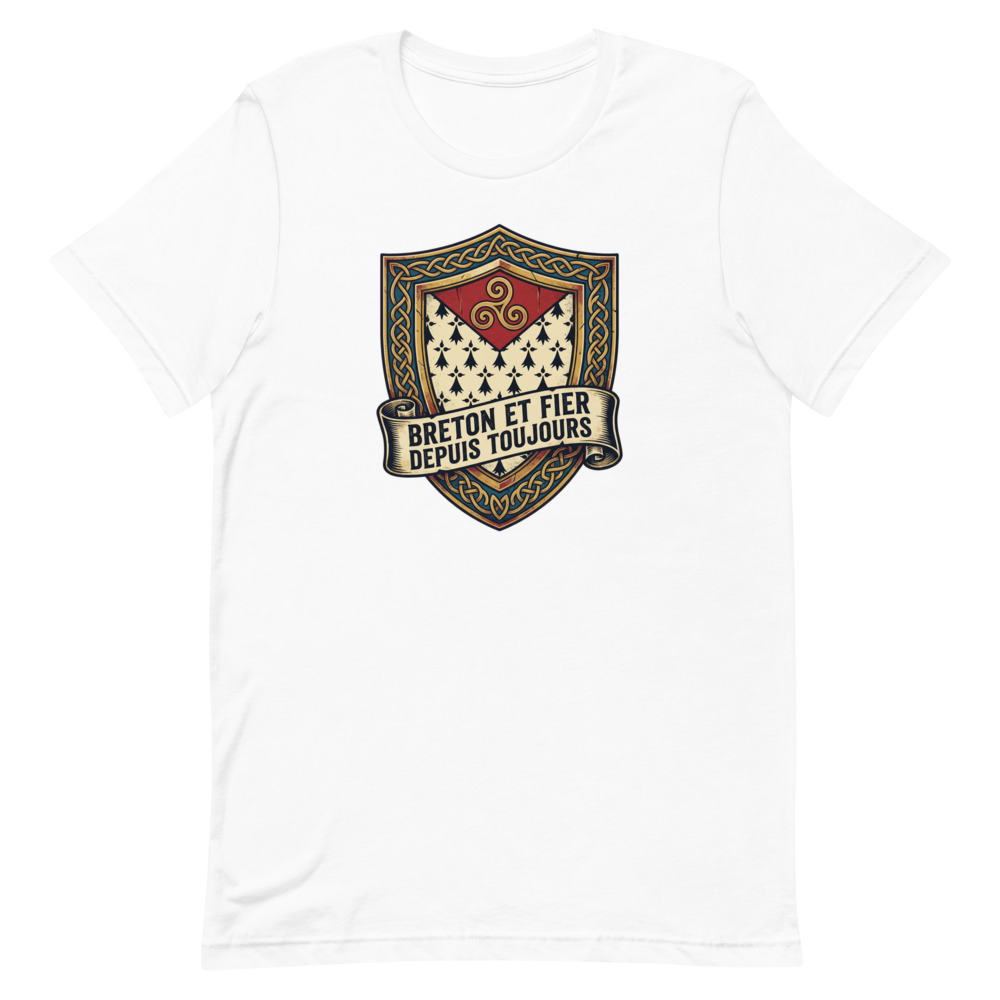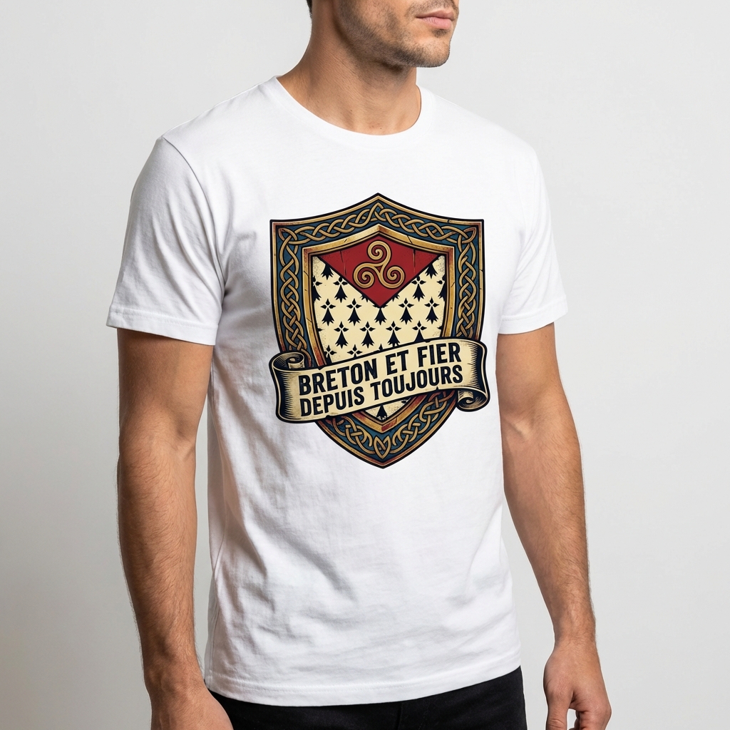 Notre équipe de graphistes a puisé son inspiration dans l’histoire riche de la Bretagne pour créer ce visuel exclusif. Le style « Bold Vintage Heritage Shield » combine la puissance d’un blason traditionnel avec des éléments graphiques celtiques modernes. Les entrelacs délicats rappellent l’artisanat ancestral, tandis que la typographie audacieuse affirme votre caractère bien trempé. Ce design intemporel s’adapte à tous les looks, du plus décontracté au plus travaillé, tout en restant fidèle à l’esprit celte. C’est l’équilibre parfait entre tradition et modernité.