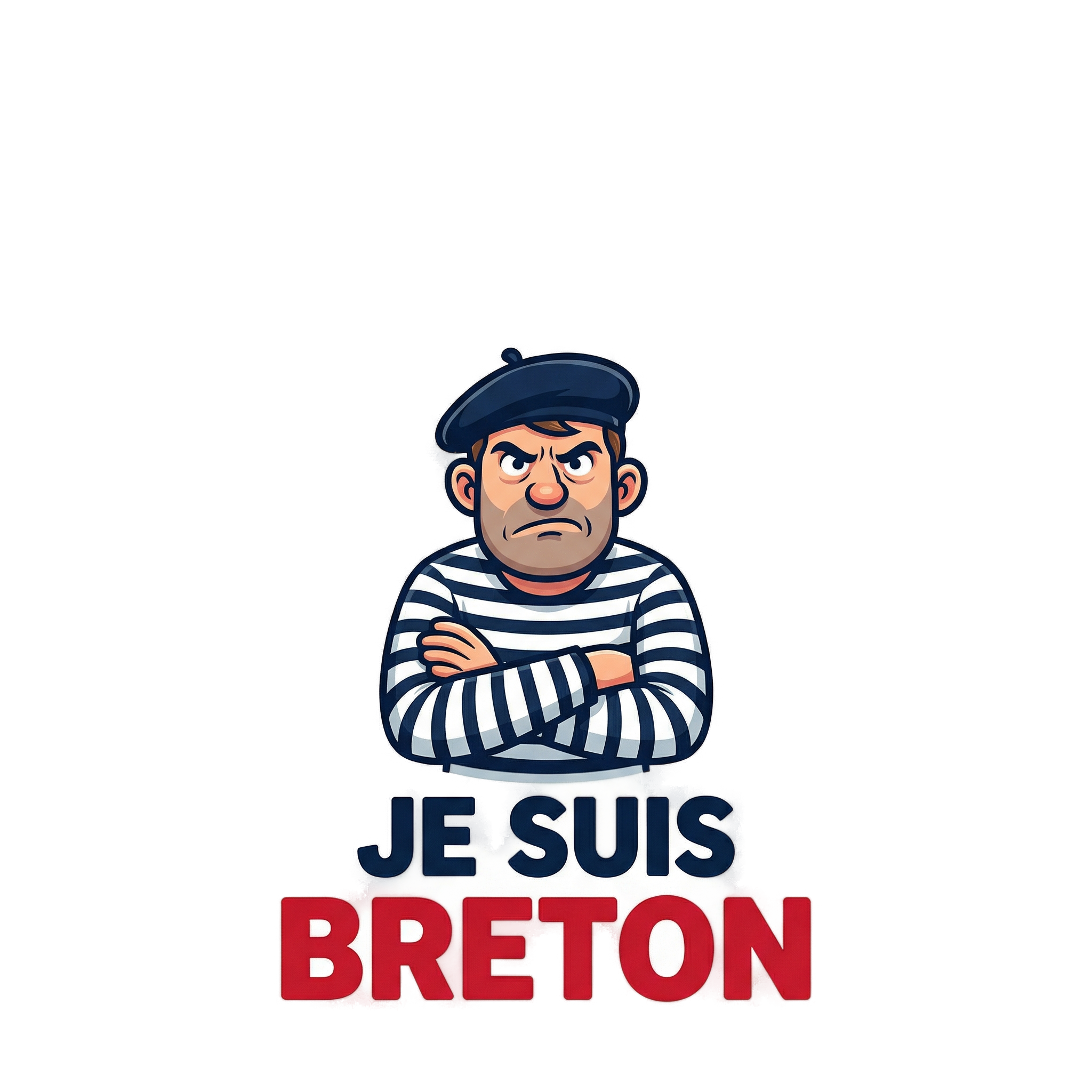 On dit souvent que les Bretons ont la tête dure comme du granit. Est-ce un défaut ? Absolument pas, c’est une qualité essentielle ! Ce t-shirt « Je suis pas têtu, je suis Breton » est fait pour ceux qui assument pleinement leur ténacité légendaire. Avec son illustration style cartoon d’un Breton aux bras croisés et au regard déterminé, ce vêtement capture parfaitement l’esprit rebelle et attachant de la Bretagne.