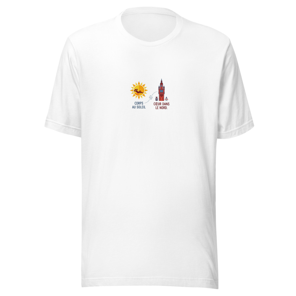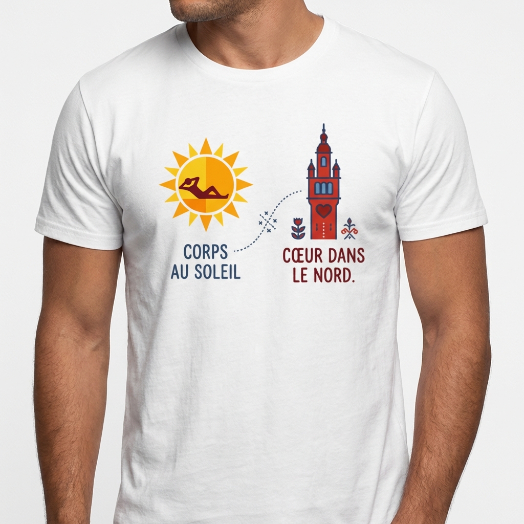 Peu importe où vos pas vous mènent, que ce soit sur les plages de la Côte d’Azur, sous le soleil de Montpellier ou dans l’agitation parisienne, on n’oublie jamais vraiment d’où l’on vient. Notre t-shirt « Corps au soleil, Cœur dans le Nord » a été pensé pour tous les expatriés, les voyageurs et les cœurs fidèles qui portent les Hauts-de-France en eux comme un trésor. Ce design exclusif capture l’essence même de la nostalgie chti avec une élégance rare, loin des clichés habituels, en adoptant un style minimaliste d’inspiration scandinave qui s’adapte à toutes les garde-robes.