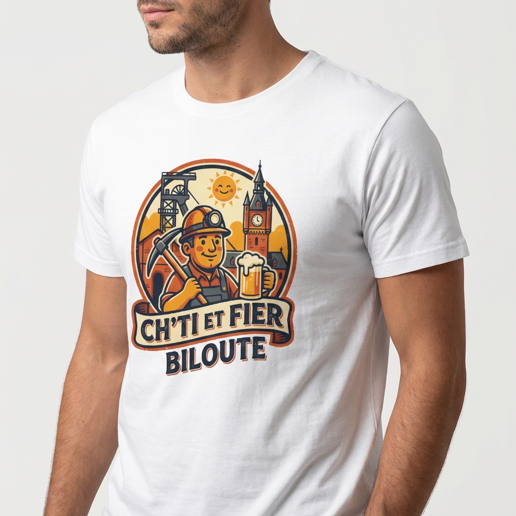 Bienvenue chez les Ch’tis ! Si pour vous le mot « biloute » est une marque d’affection et que vous savez que le Nord est bien plus qu’une simple région, c’est un véritable état d’esprit, alors ce t-shirt est fait pour vous. Notre création exclusive « Ch’ti et Fier Biloute » rend hommage à la culture chaleureuse des Hauts-de-France avec une touche d’humour et un style résolument rétro.