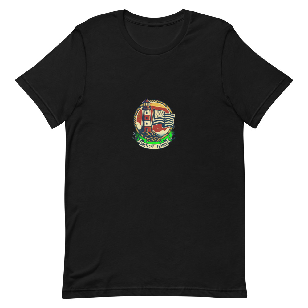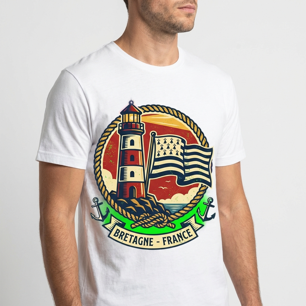 Le design unique plonge dans un univers maritime vintage soigné. On y retrouve l’emblématique phare, gardien de nos côtes déchiquetées, sublimé par le légendaire drapeau Gwenn-ha-du. Que vous soyez de Brest, de Saint-Malo, de Rennes ou expatrié à l’autre bout du monde, ce t-shirt est votre lien indéfectible avec la terre de vos ancêtres. C’est le moyen idéal d’affirmer votre identité celtique avec élégance et caractère.