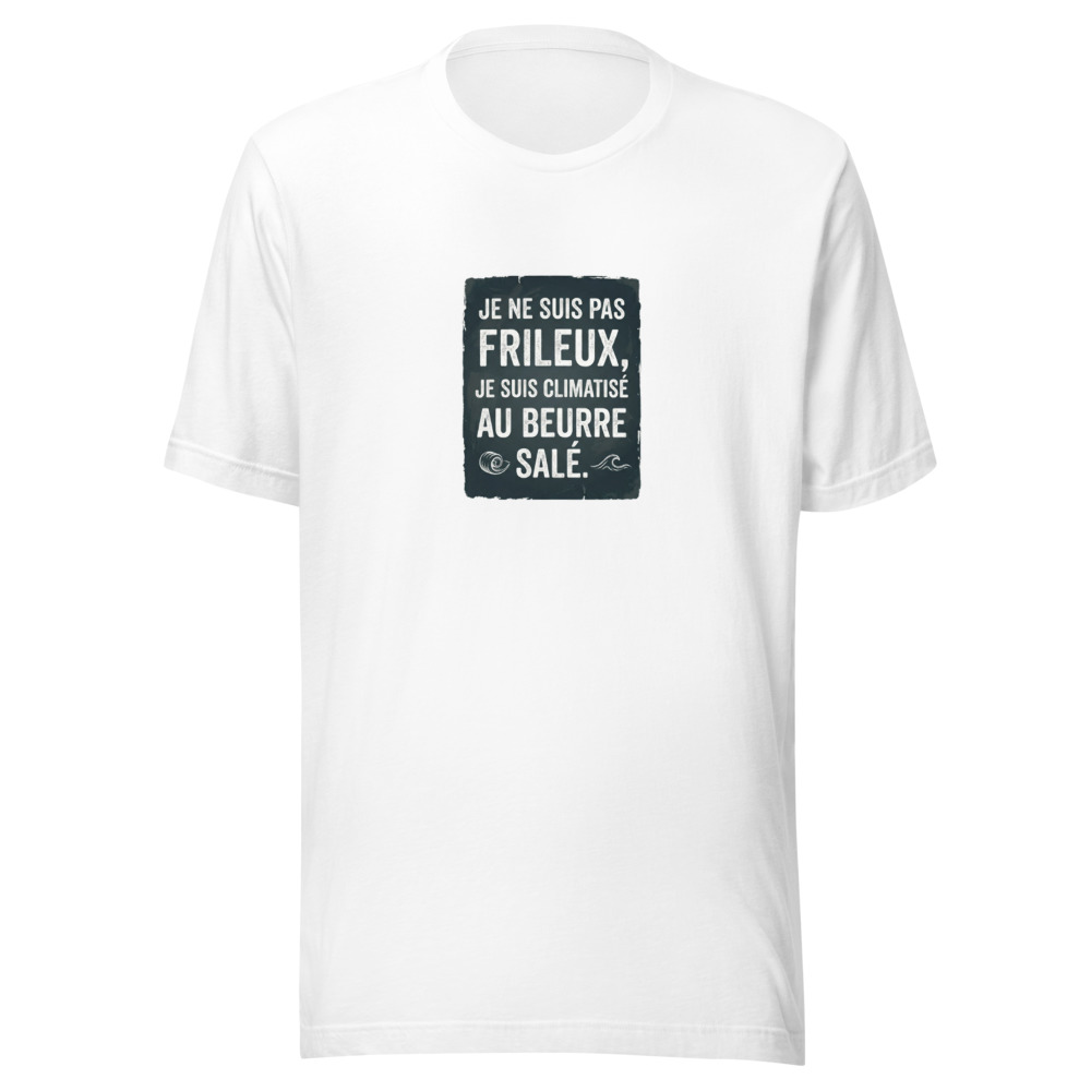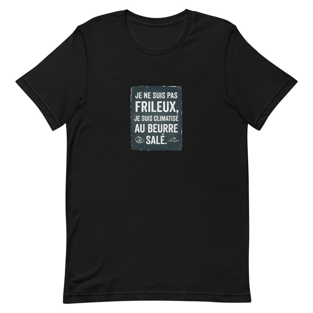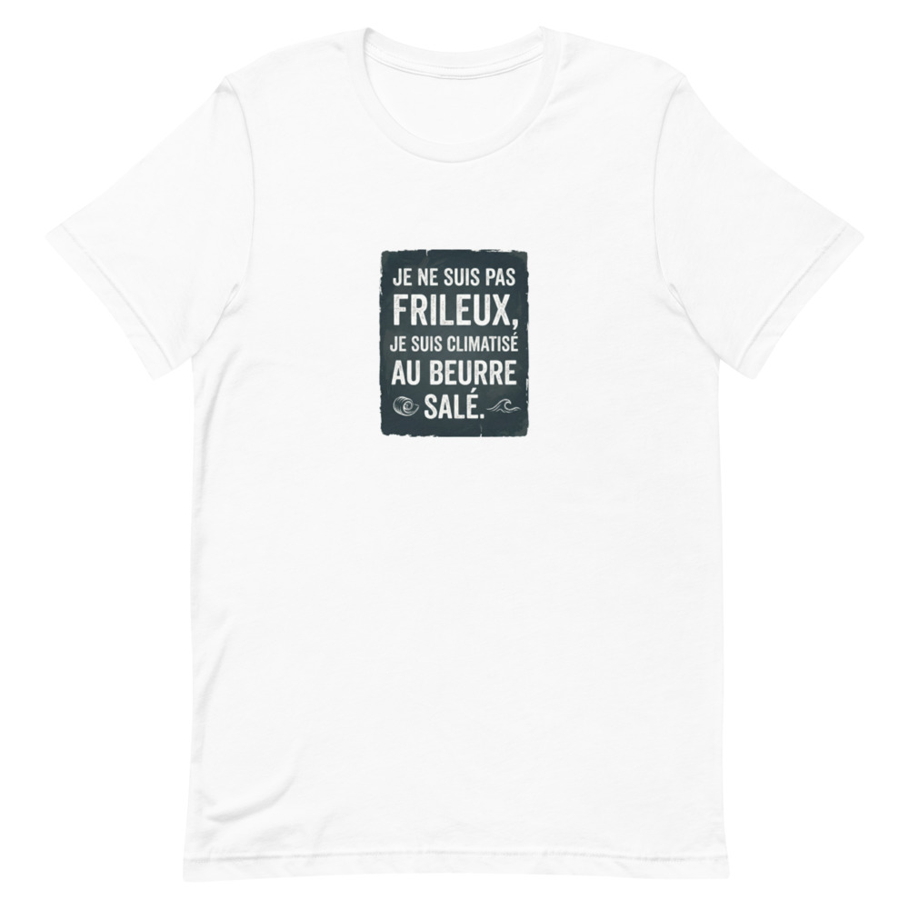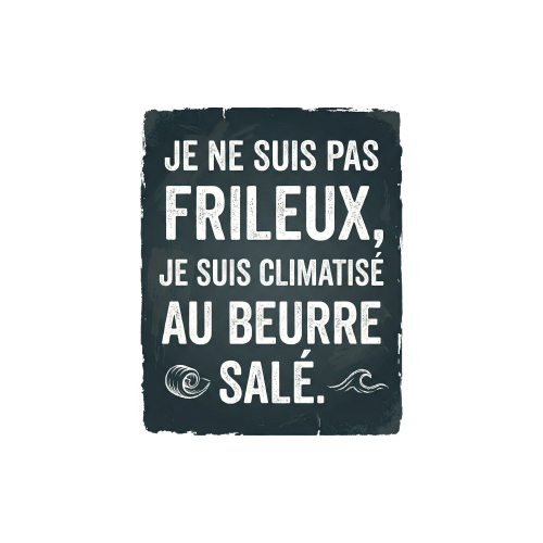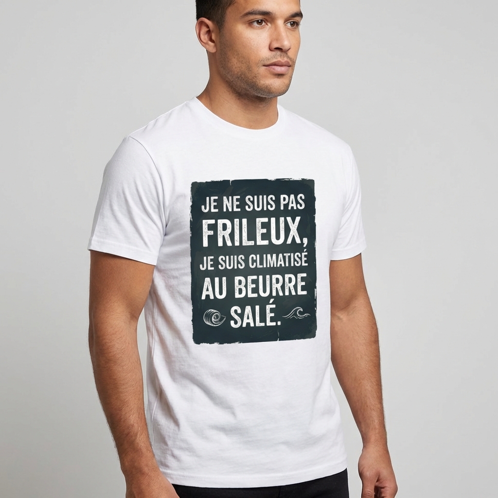 En Bretagne, on ne dit pas qu’il fait froid, on dit que l’air est tonique. Mais pour ceux qui osent encore vous demander si vous n’avez pas un peu frais, nous avons créé la réponse parfaite. Notre t-shirt « Je ne suis pas frileux, je suis climatisé au beurre salé » est bien plus qu’un simple vêtement : c’est une déclaration d’appartenance à une terre de caractère où la météo n’est qu’un détail technique.