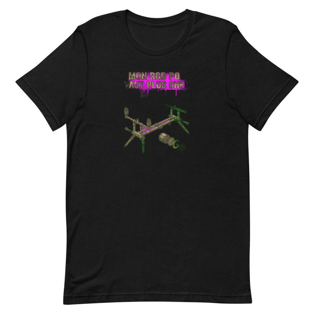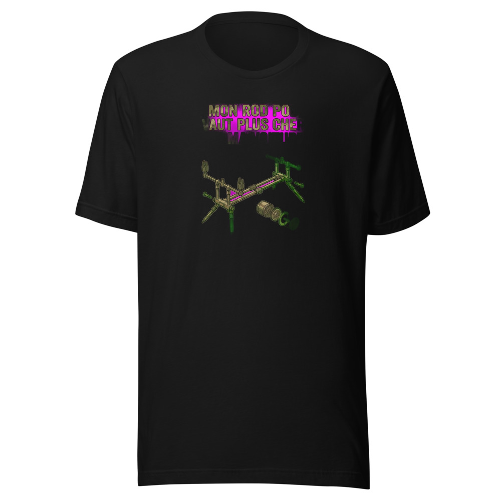 Vous le savez, vos amis le savent, et votre banquier s’en doute probablement : pour un vrai carpiste, le matériel n’est pas une dépense, c’est un investissement vital. Ce t-shirt humour pêche capture parfaitement cette réalité avec son slogan décalé : « Mon rod pod vaut plus cher que ma voiture. Et alors ? ».