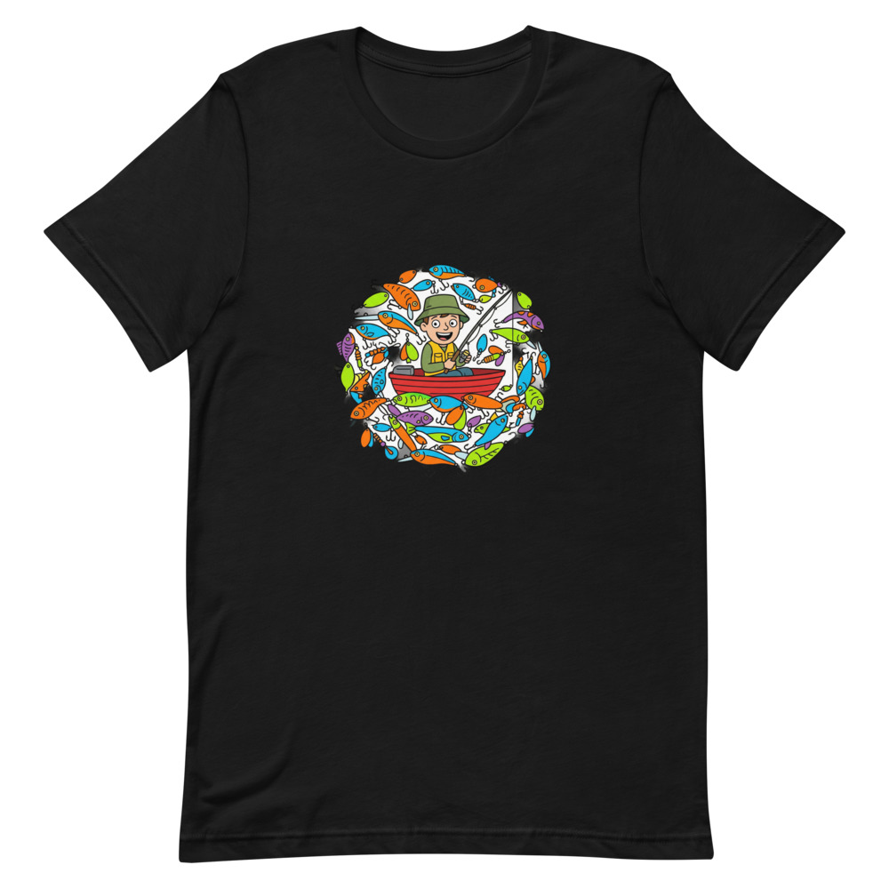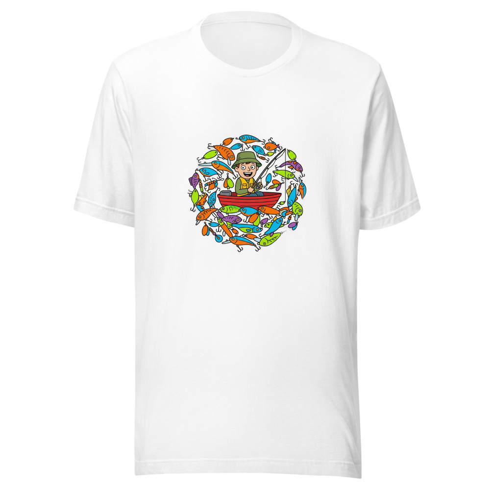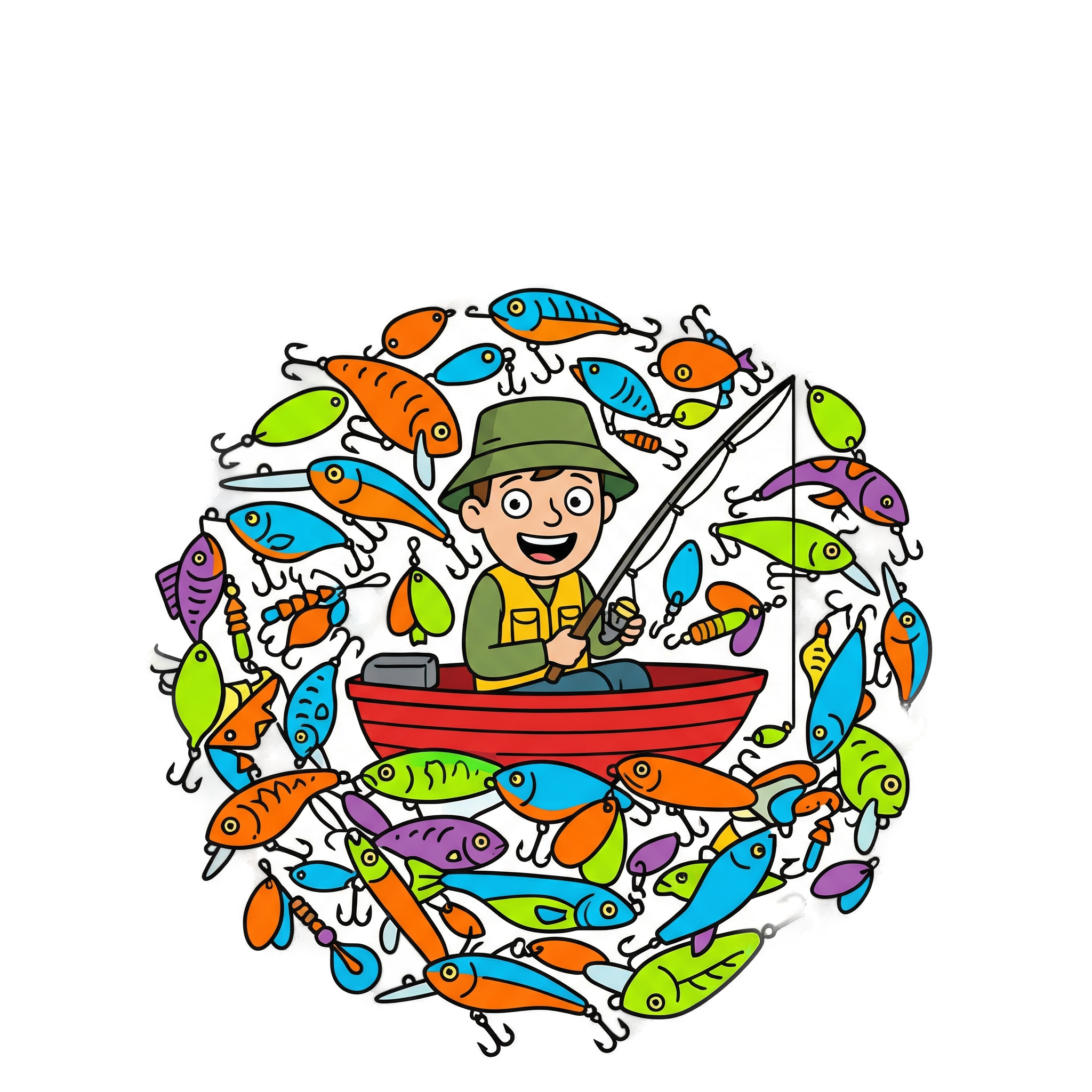 Le design style cartoon, reprĂ©sentant un pĂȘcheur dĂ©bordĂ© entourĂ© d’une centaine de leurres diffĂ©rents (poissons nageurs, leurres souples, cuillĂšres), capture parfaitement la folie de l’Ă©quipement moderne. C’est une piĂšce qui parlera immĂ©diatement Ă tout traqueur de carnassiers qui possĂšde plus de boĂźtes de rangement que de prises records.