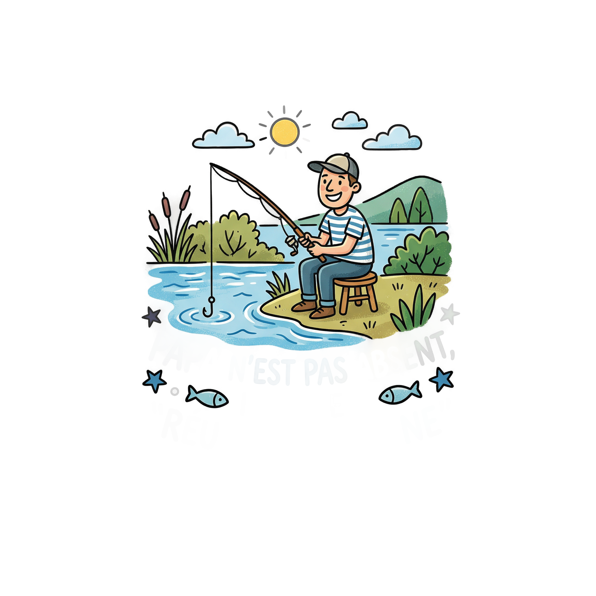 Ce n’est pas qu’il ne veut pas être là, c’est juste que les poissons l’appellent pour une urgence professionnelle ! Notre design exclusif arbore le slogan hilarant : « Papa n’est pas absent, il est en ‘réunion externe’ au bord de l’eau. »