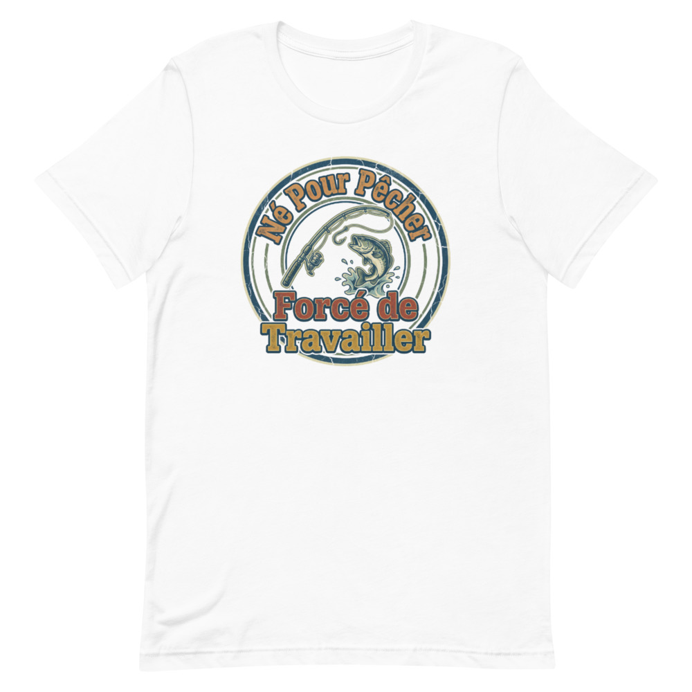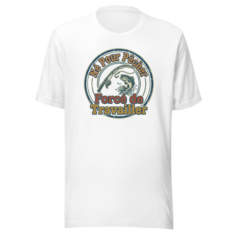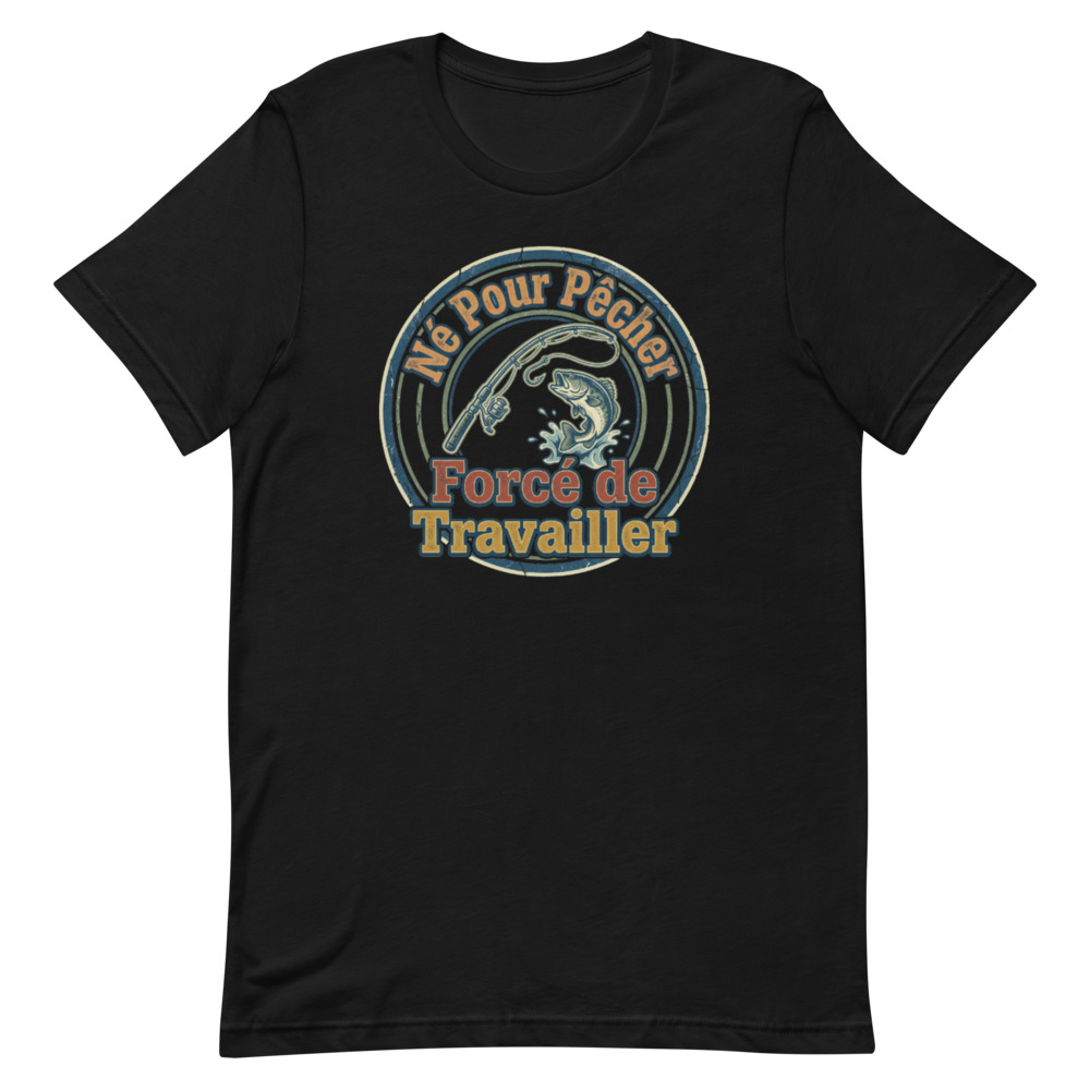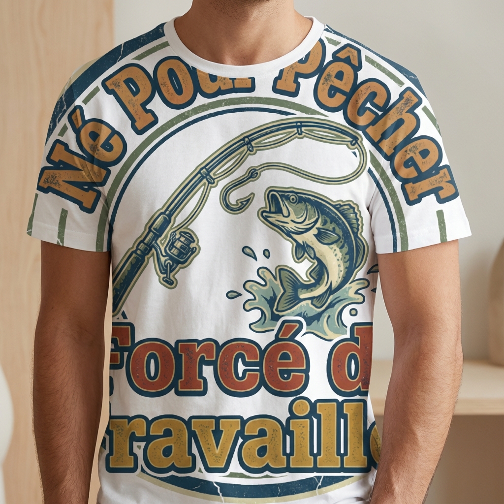 Vous connaissez ce sentiment ? Le réveil sonne, il est lundi matin, et au lieu de préparer vos cannes à pêche, vos moulinets et vos boîtes de leurres, vous devez enfiler une chemise pour aller au bureau. Notre t-shirt « Né Pour Pêcher Forcé de Travailler » est bien plus qu’un simple vêtement, c’est un véritable cri du cœur pour tous les passionnés de la truite, du brochet ou de la carpe qui préfèrent le calme de la rivière à l’agitation de la ville.