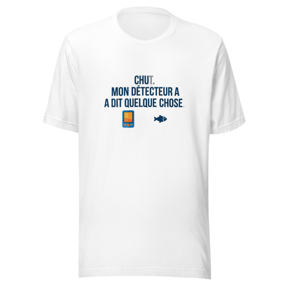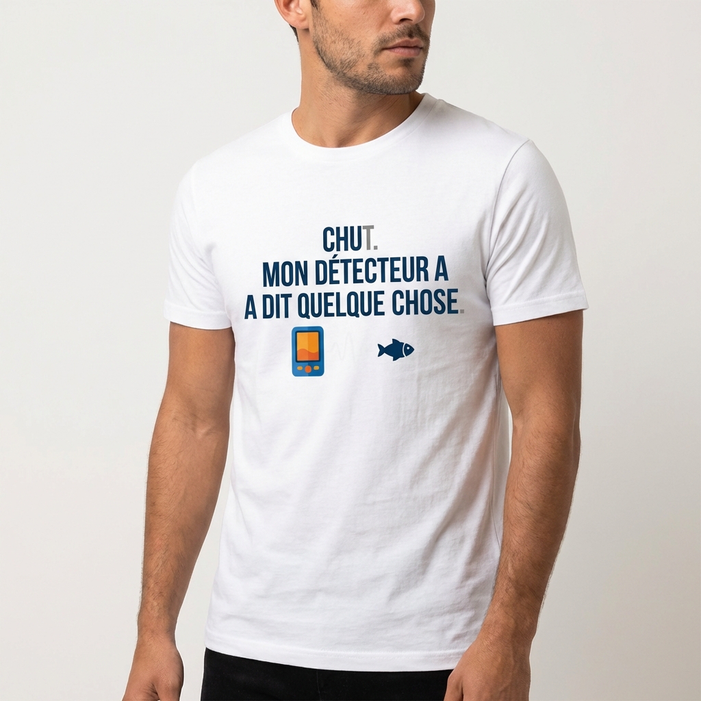 Avec son slogan « Chut. Mon détecteur a dit quelque chose. », ce vêtement capture l’essence même de la pêche à la carpe : l’attente, la patience, et l’explosion de joie lors du départ tant attendu.