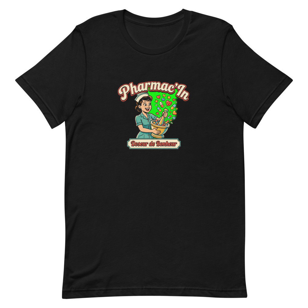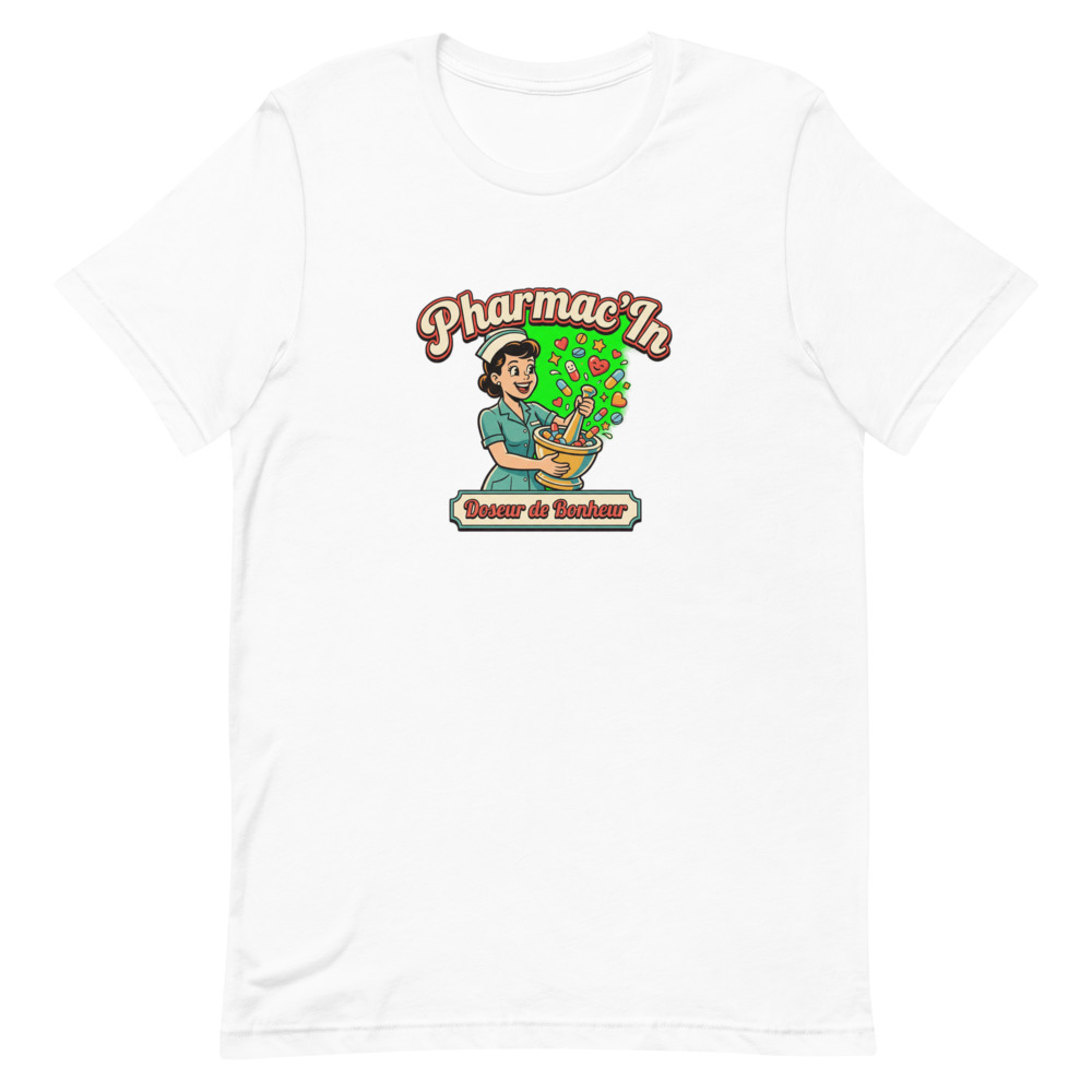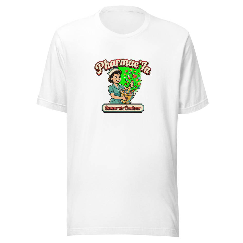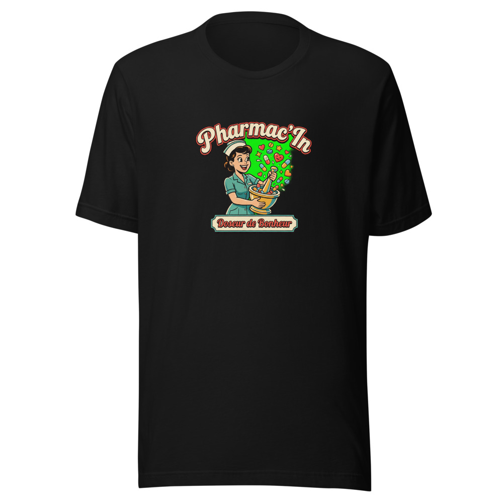 Ce n’est pas juste un t-shirt, c’est votre nouvelle blouse de détente. Il dit au monde que derrière le comptoir, il y a une personne passionnée qui sait que le rire est souvent le meilleur des médicaments.