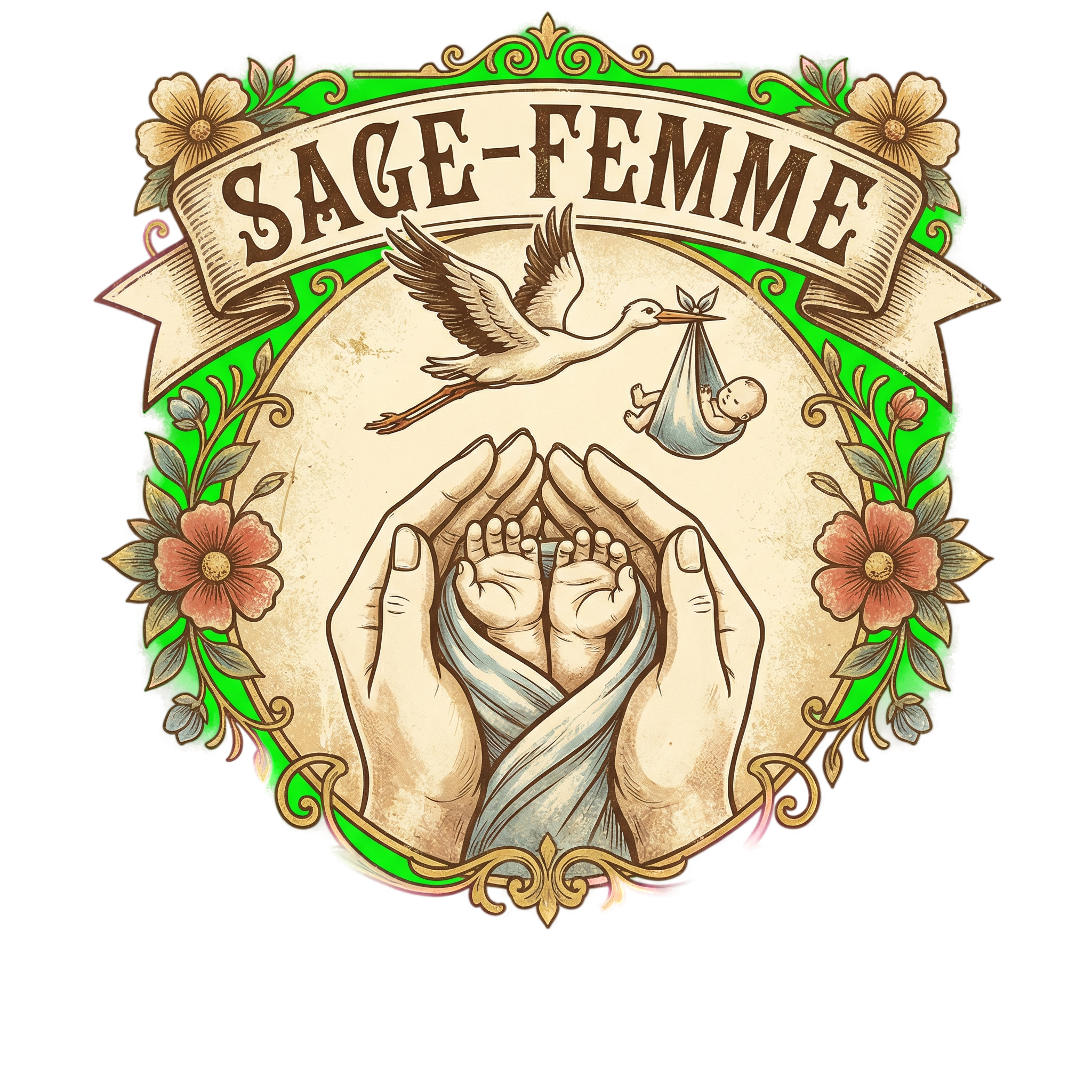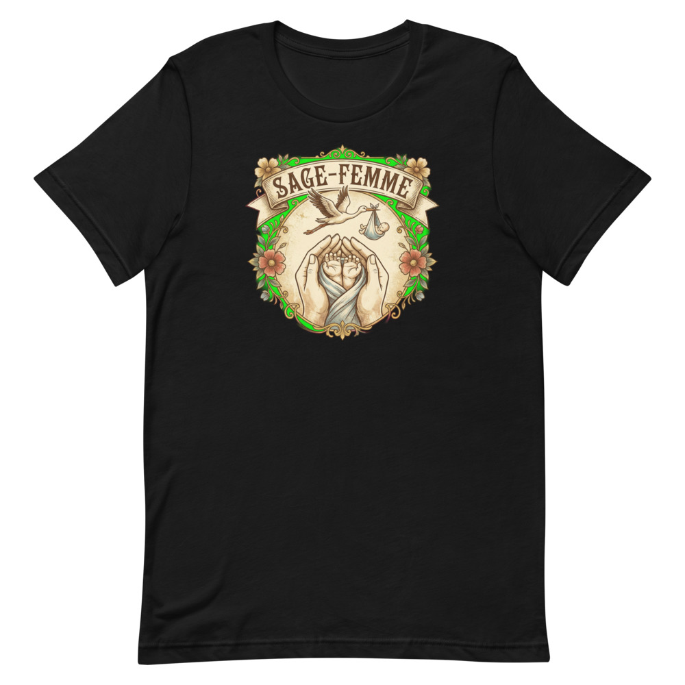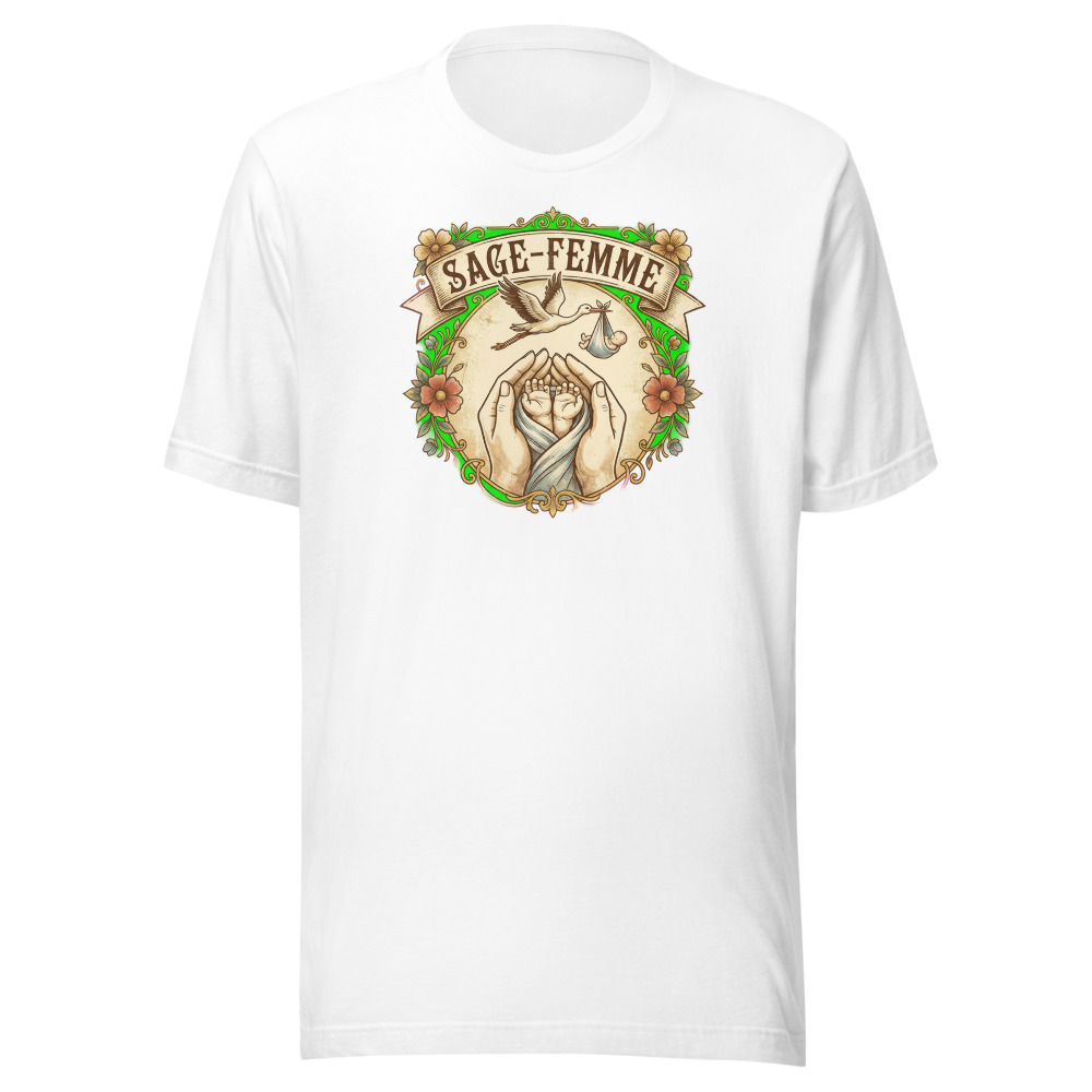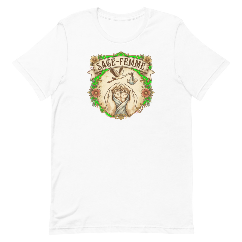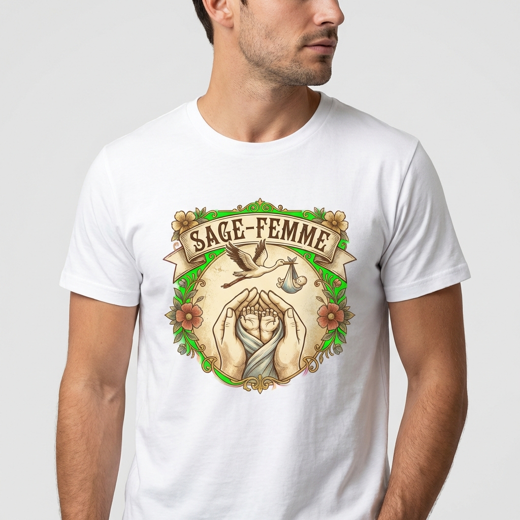 Être sage-femme, c’est bien plus qu’un métier, c’est une vocation qui touche au sacré. Chaque jour, vous accompagnez l’arrivée de nouveaux mondes avec une douceur et une expertise sans pareilles. Notre t-shirt « Sage-femme faiseuse de miracles » a été conçu pour honorer ce lien unique. Avec son illustration vintage représentant une cigogne et des mains de nouveau-nés, il capture l’essence même de votre quotidien : la tendresse, l’espoir et la vie qui éclot.